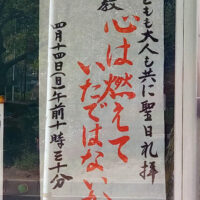聖書 ルカによる福音書24章28~35節 説教 「心は燃えていたではないか」 田口博之牧師 イエス様が復活された日の午後、二人の弟子がエルサレムからエマオへの道を話しながら歩いていると、復活されたイエス様がそばに来て一 …