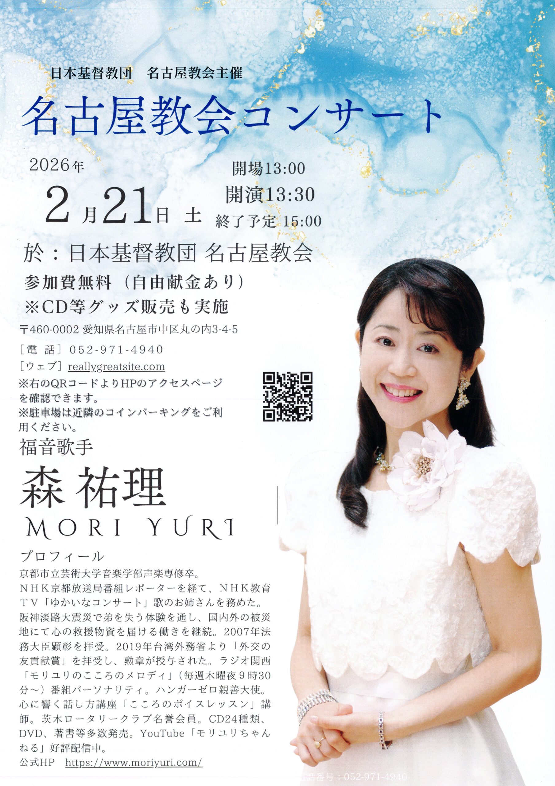 福音歌手の森祐裡さんをお迎えしてコンサートを行います。